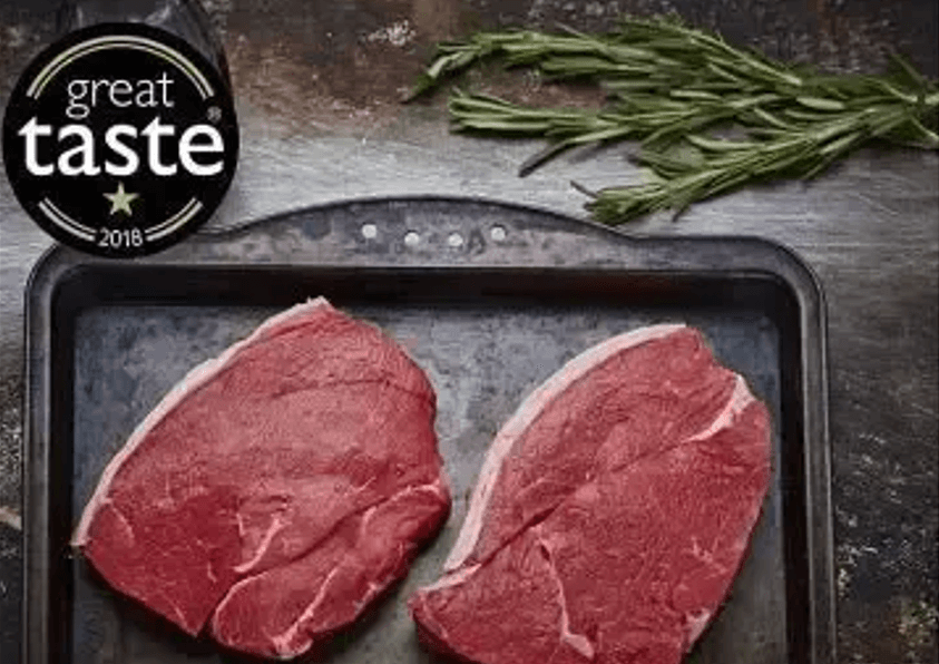 由于是牛外脊,在肉的外围有一圈白色的筋,总体口感韧度强、肉质相比菲力较为硬一点、但是非常具有嚼劲,也是很多牛排爱好者的首选。