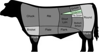 牛口感最嫩的部位,脂肪含量也很低。同时也是最贵的一部分,因为一头牛身上只有一小部分,因此很珍贵。这个部位特别适合拿来做黑椒牛柳。