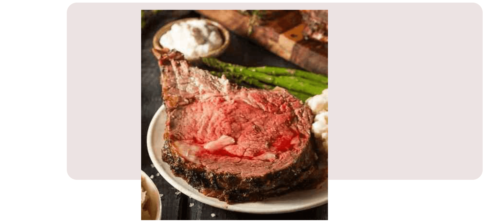 2.Rare(一分熟):仅表面煎熟,呈灰褐色,肉的中心是宝石般的血红色,由内向外呈放射状至烤熟层。这个熟度的牛排口感柔嫩,有肉汁鲜味,生熟层次感交汇。核心温度比体温稍高些,约48.9 °C(120 °F)。