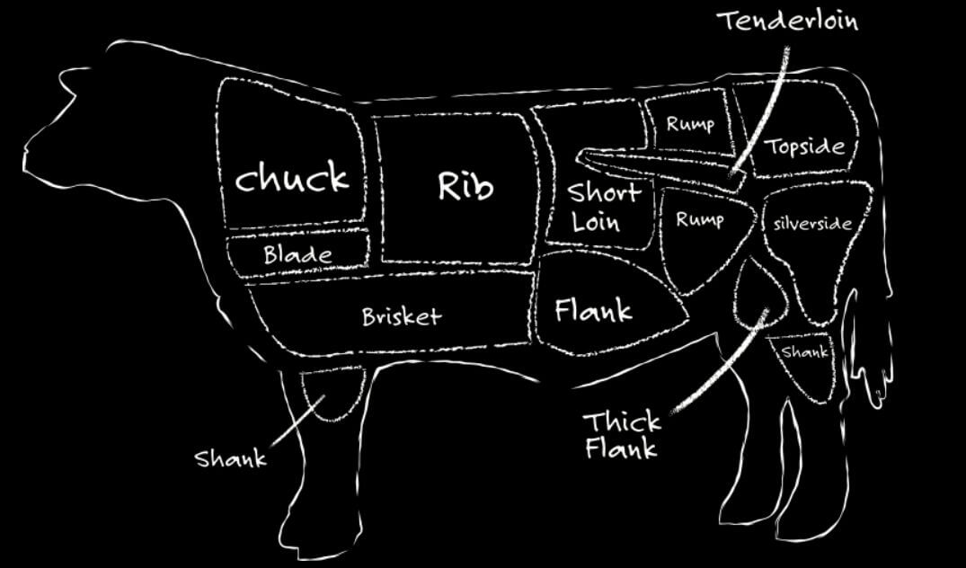 牛不同部位的肉有不同的分工,被做成牛排自然有不同的名称,比如菲力丶肉眼丶沙朗丶西冷丶牛仔骨……很多人都会被搞得晕头转向,看看下图你就清楚了。