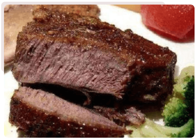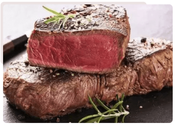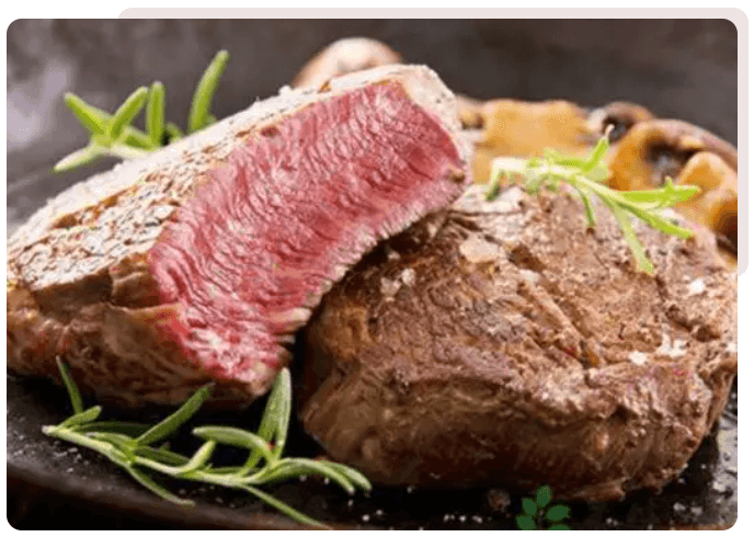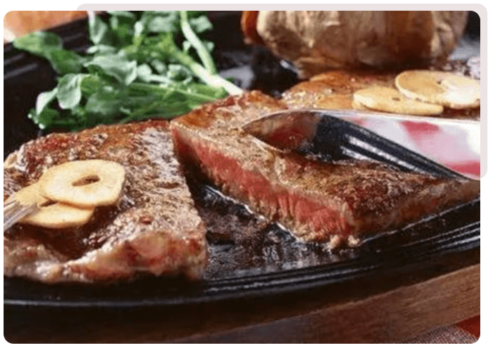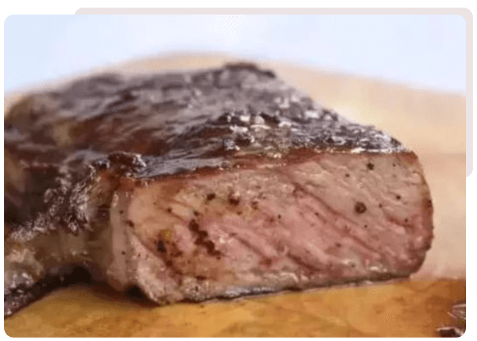 两面各煎2-3分钟,大部分肉受热量渗透传至中心,切开后两侧熟肉呈棕色,向中心转为粉色至鲜肉色。